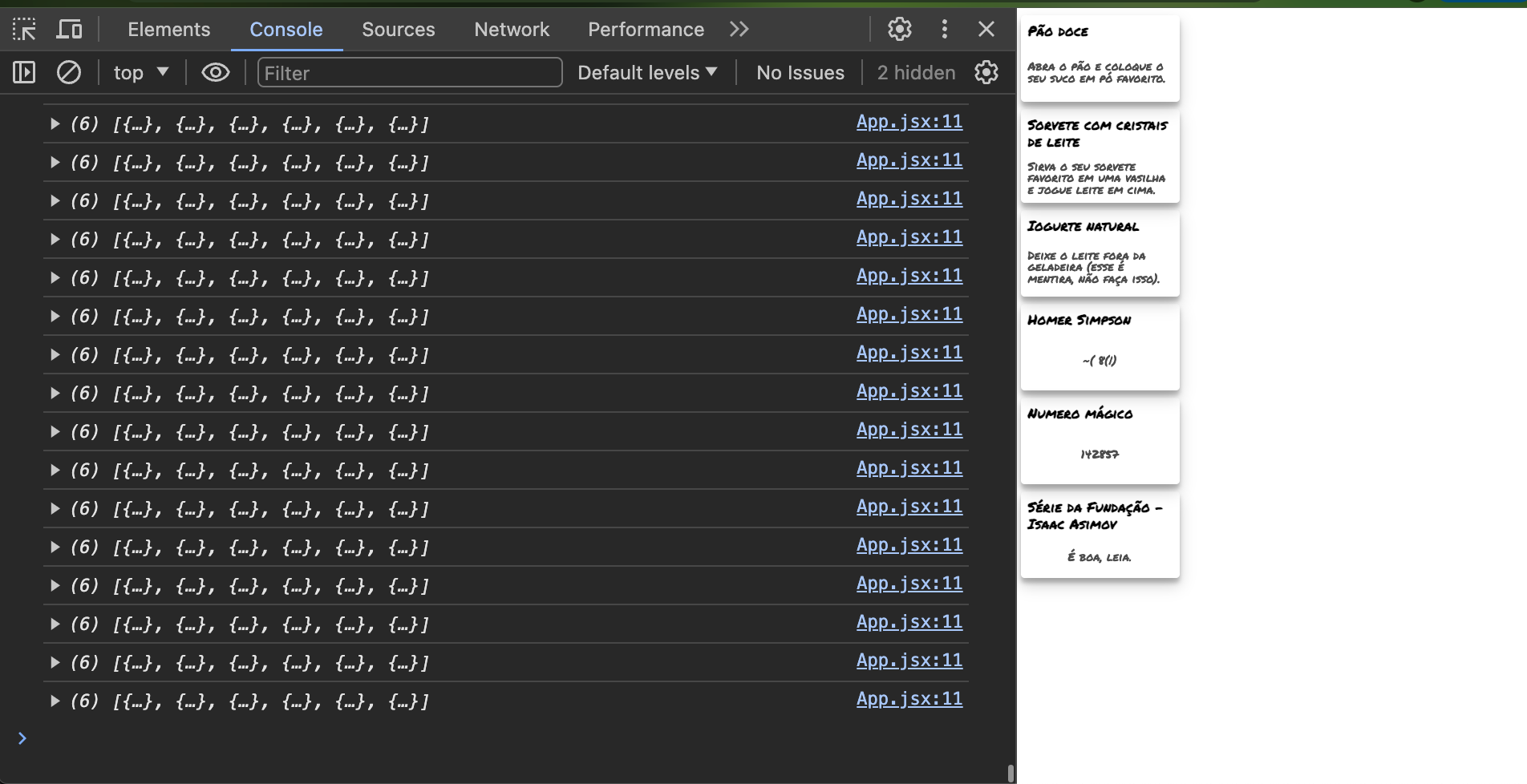 Ao executar o código acima, o console do navegador deve mostrar o JSON de anotações diversas vezes (recomendo que você feche a aba até implementar o resto do código).
