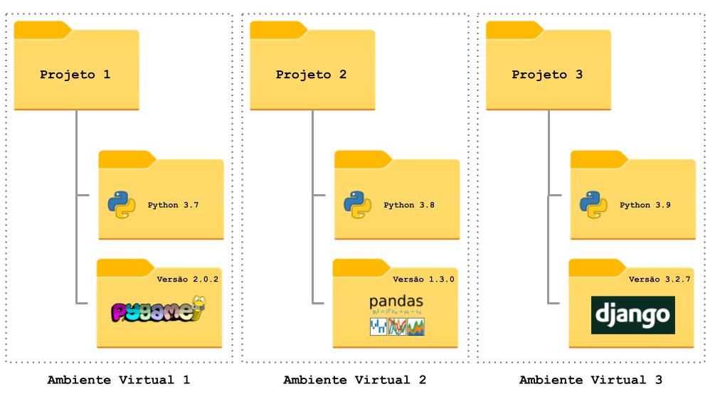 Considere o seguinte cenário: quando você começou a usar Python, a versão mais recente talvez fosse o Python 3.11 ou 3.12. Atualmente, estamos no Python 3.13, e o lançamento do Python 3.14 já está programado. Qual o problema disso? Do ponto de vista do avanço da tecnologia isso parece ótimo! Mas pense nos seus projetos antigos. O que acontecerá com eles quando você atualizar a versão do Python no seu computador para uma versão mais recente que muda um comportamento ou remove uma função que você utilizava no projeto?