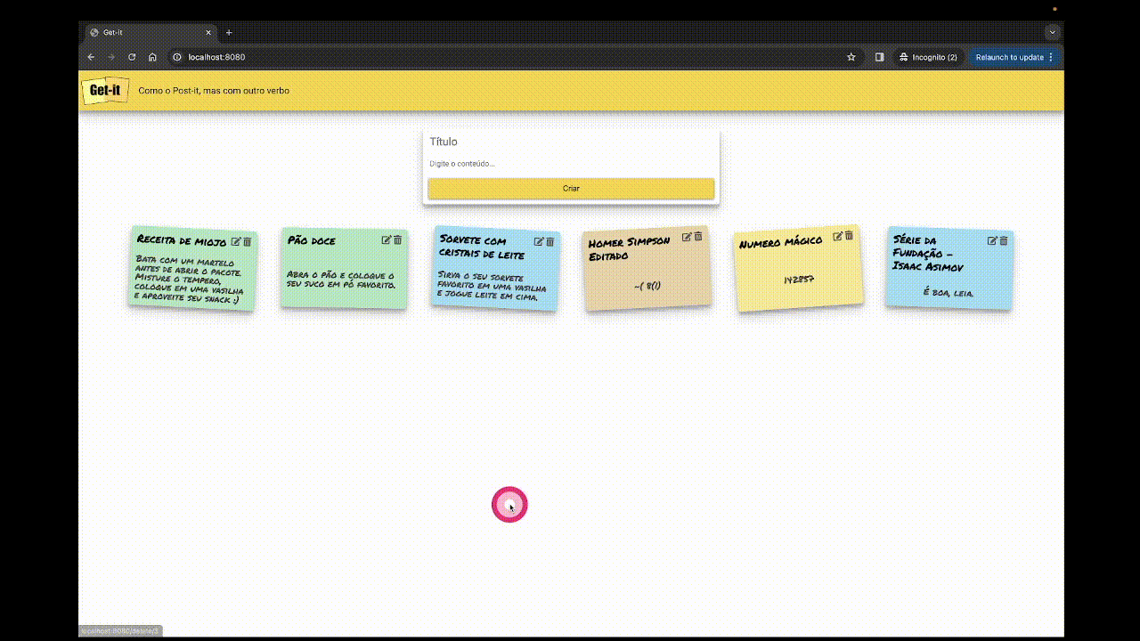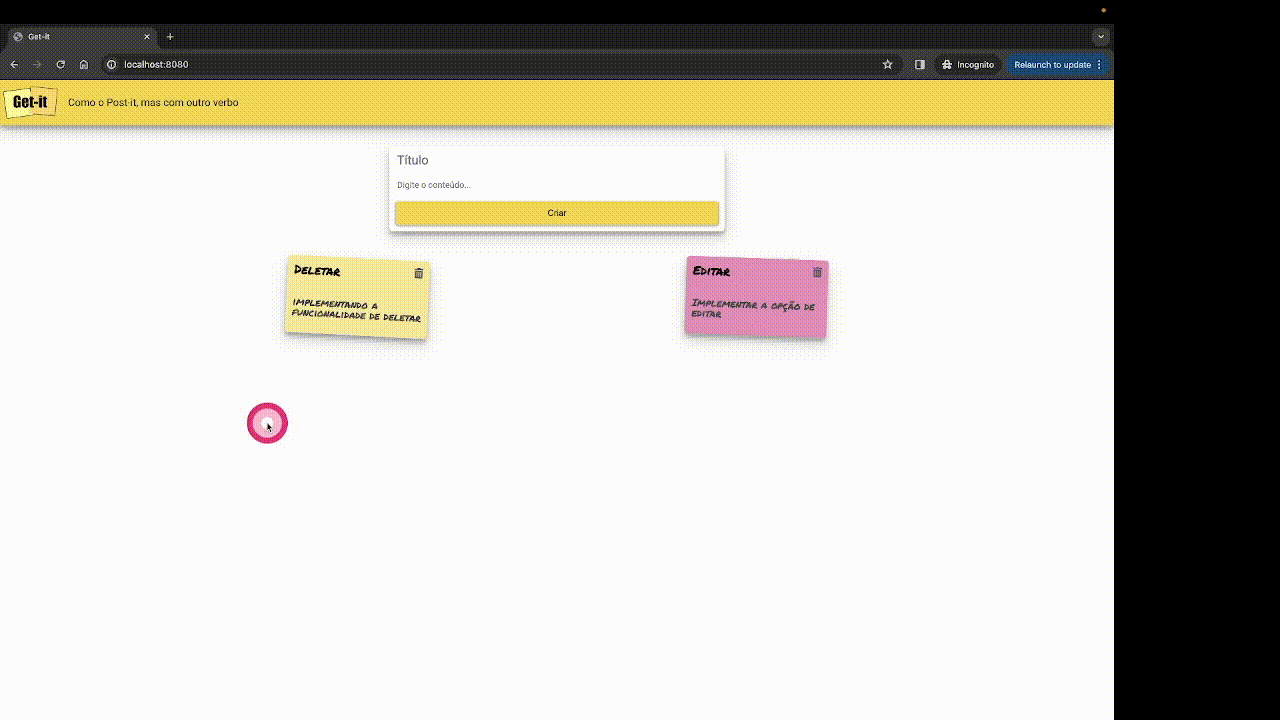 cardde cada nota existente para excluir esta nota. - Um botão/link gera uma requisição quando o usuário clica nele. Quando adicinar um botão/link, faça um teste para ver a requisicão que é gerada.