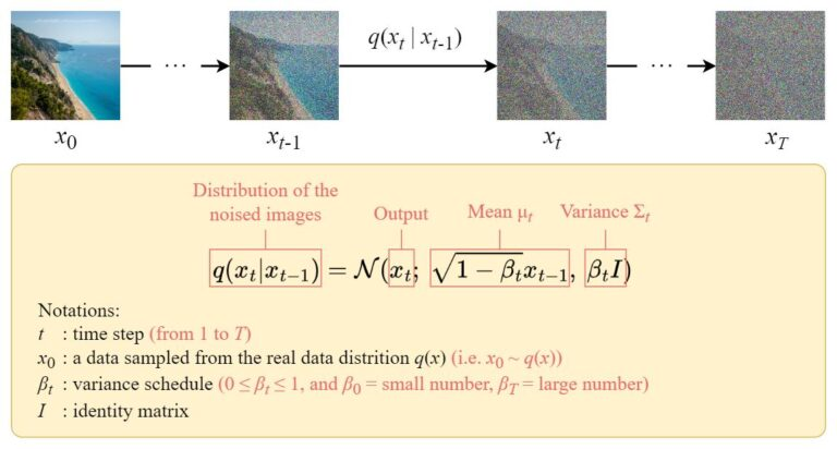 where \( \beta_t \) is a variance schedule that controls the amount of noise added at each step.
