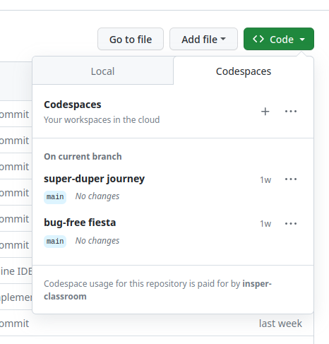 Sugerimos, que após criado o codespace, vocês editem e coloquem o nome de cada um para não confundir.