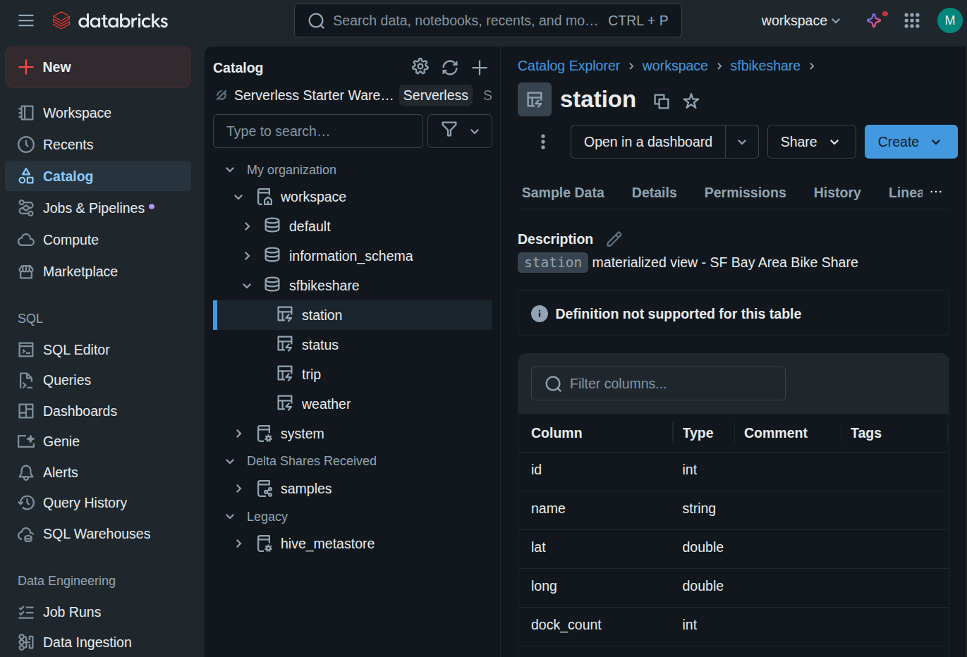 Vamos explorar o catálogo de dados disponível no ambiente.
