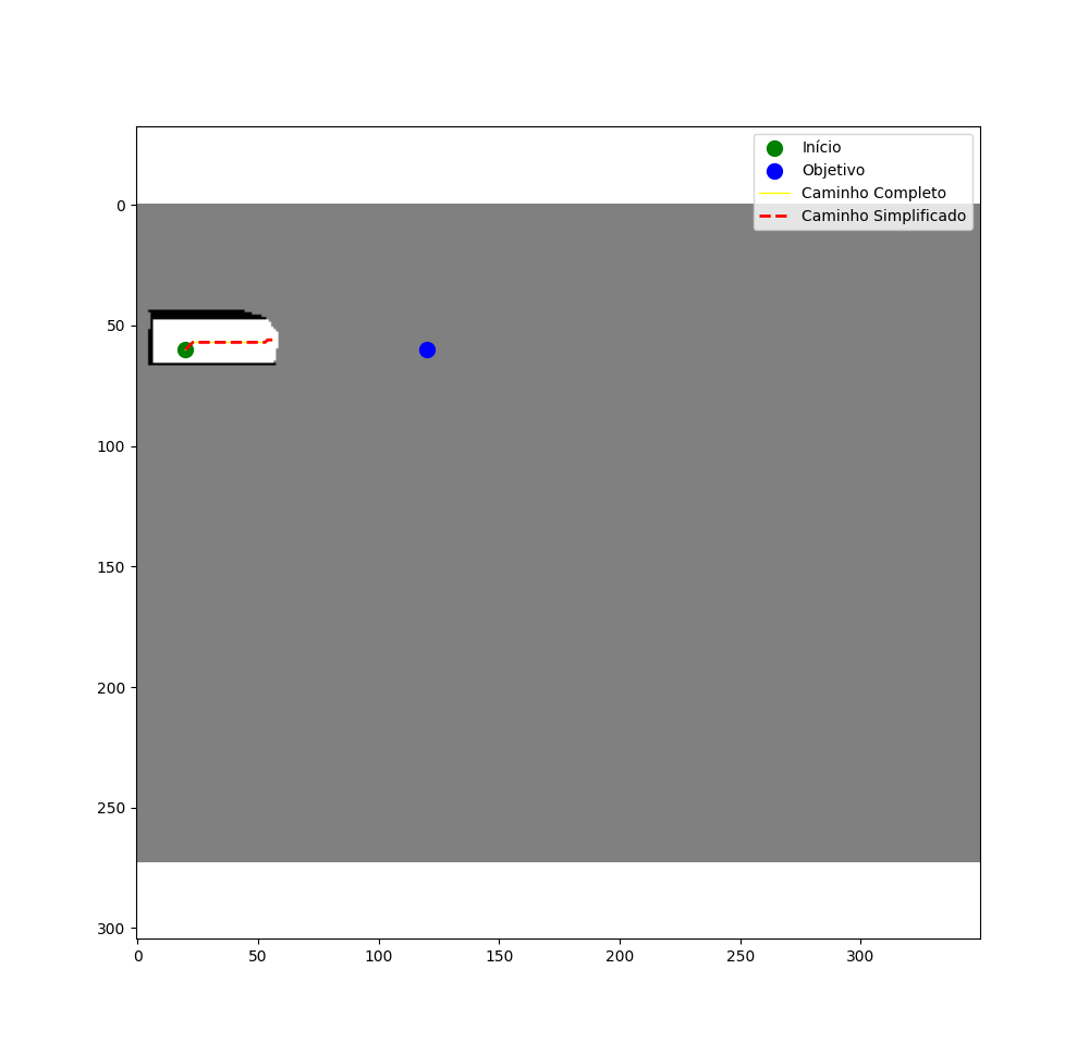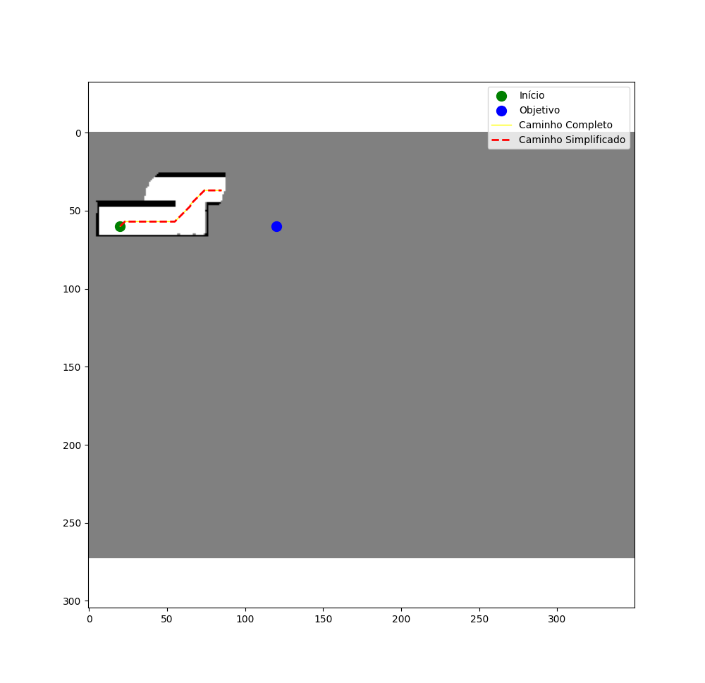 Este caminho deverá fazer com o que robô saia do ponto de início e ande em direção ao ponto final até na borda da região que é conhecida por ele, como apresentado na figura 1.