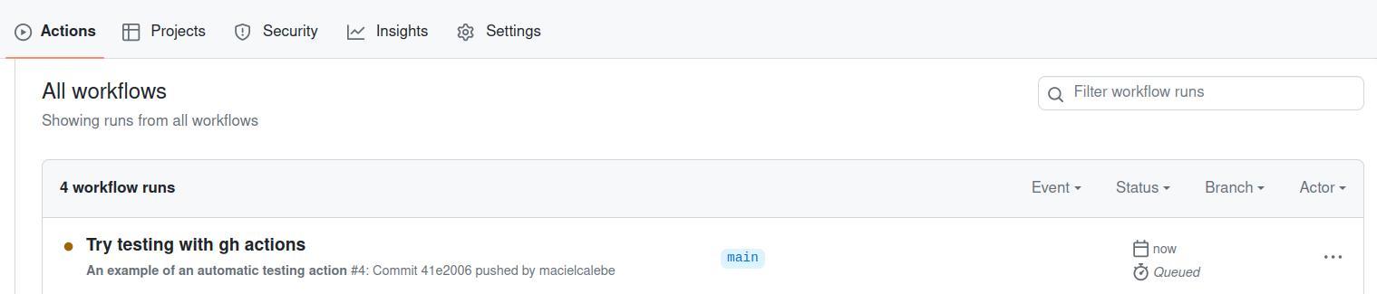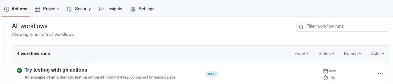 Let's build an action on github that runs automatic tests whenever a push is made to the main branch.
