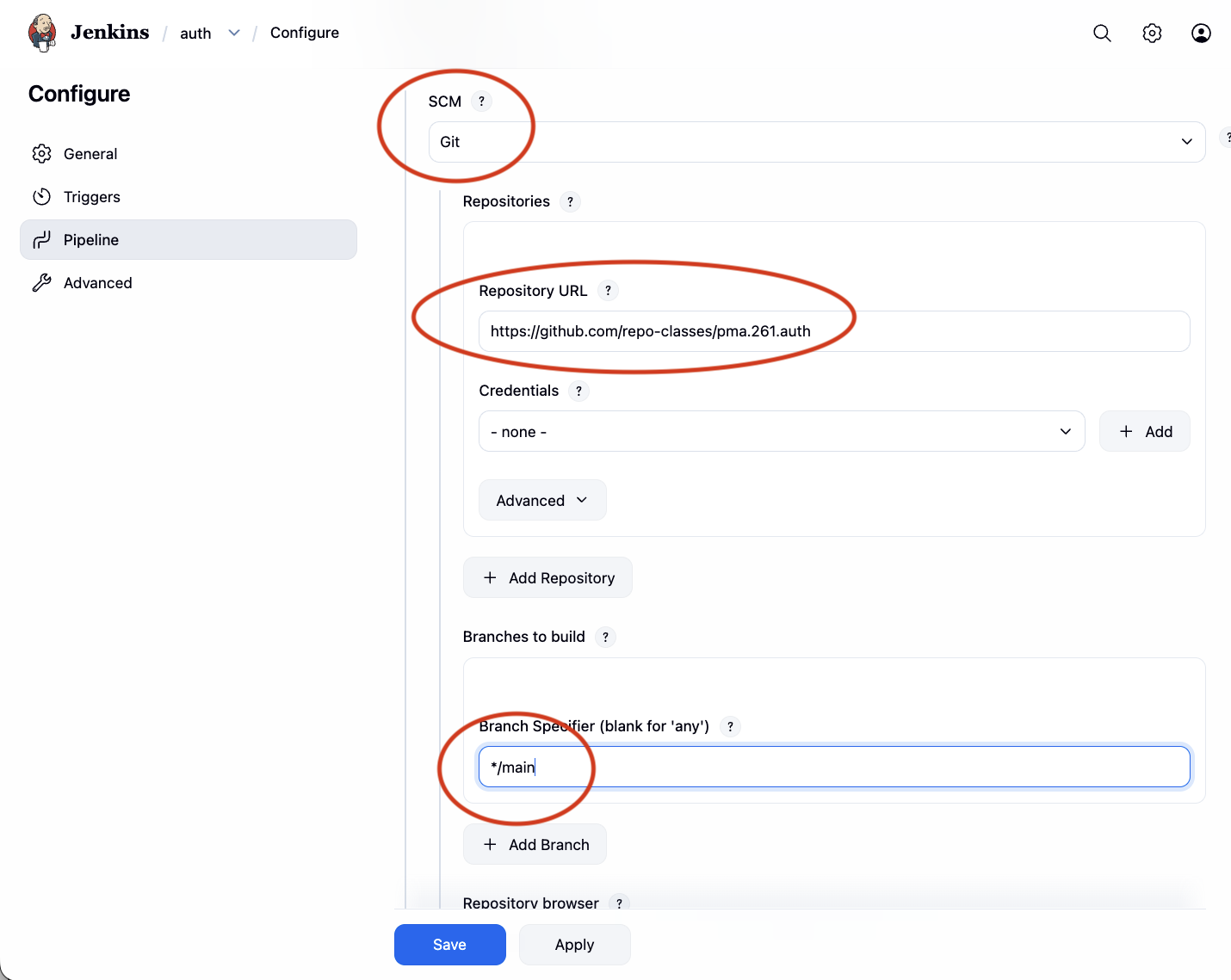 Create a New Item, choose the Pipeline type, and set the Definition to Pipeline script from SCM. Jenkins will clone the repository and read the Jenkinsfile on every build.
