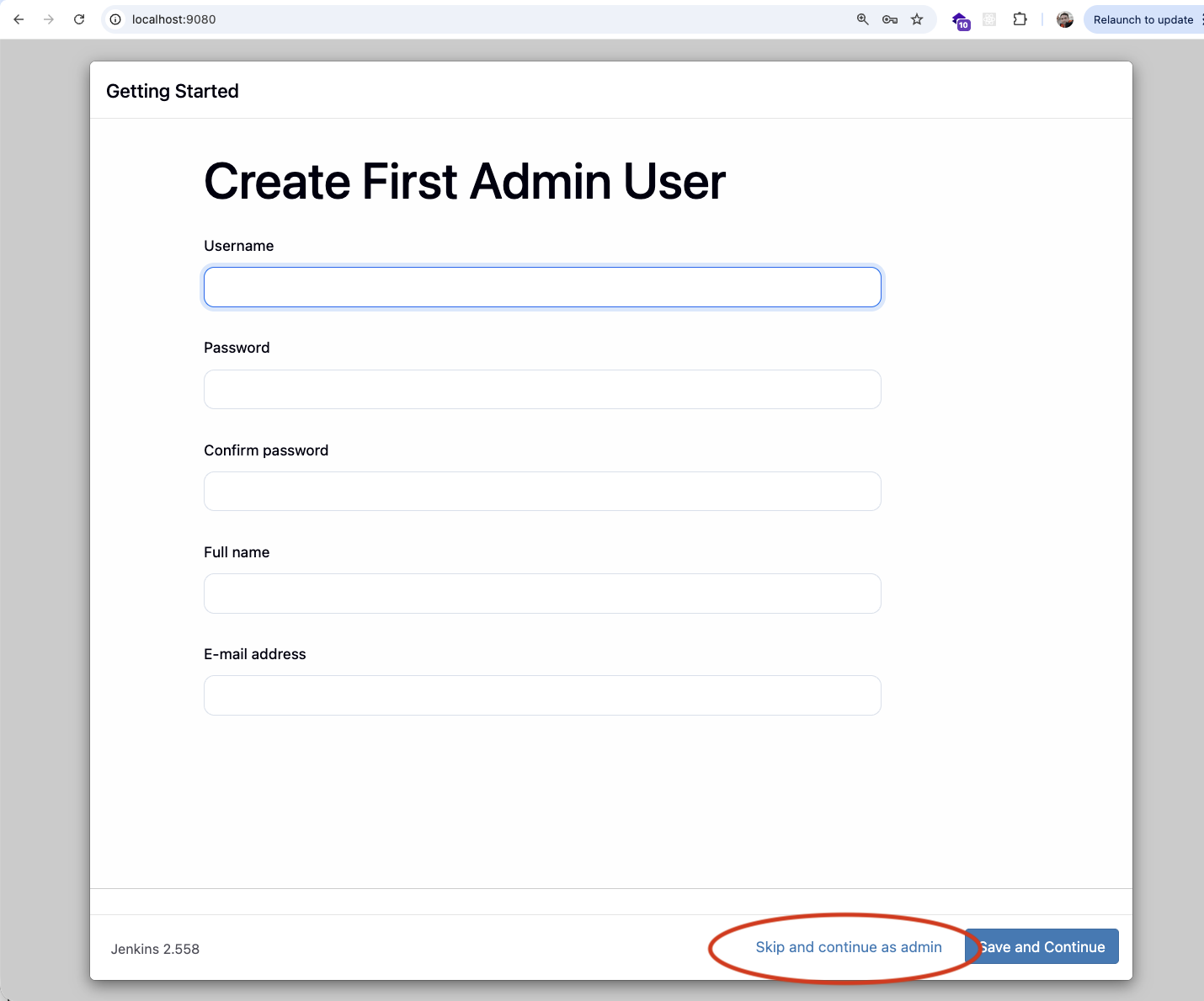 Jenkins is now available at http://localhost:9080/.